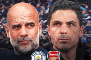 英超官方社媒曬出海報,預熱這場重要比賽,兩隊主帥瓜迪奧拉、阿爾特塔出鏡,海報上還有兩隊的積分排名。