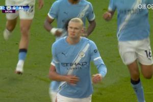 體育資訊4月20日訊 曼城vs阿森納,比賽第65分鐘,奧賴利橫敲,哈蘭德后點包抄破門!曼城2-1領先阿森納!