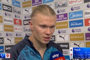體育資訊04月20日訊 英超第33輪,曼城2-1戰勝阿森納,賽后曼城進球功臣哈蘭德和即將離隊的B席一起接受了天空體育的采訪,二人談到了曼城的爭冠賽程。