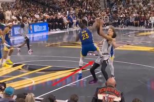 在上一場對勇士比賽的第四節(jié),文班在進攻中遭遇追夢和波杰姆的前后包夾,波杰姆倒地時一記掃腿絆倒了文班,被吹防守犯規(guī);