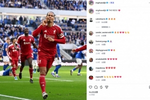 范戴克也在賽后通過社媒曬出自己進球后的慶祝照,并配文:“紅軍!”