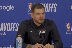 斯普利特:我們在他身上安排了不同的防守人。我們一開始用卡馬拉去防,格蘭特也防了一會兒,然后我們改打小個陣容,我們的大個子也防過他。當然,他打出了一場不可思議的比賽,35分,三分球6投5中。你知道,很難把他趕出內線。我認為我們在大部分時間里把他趕出內線方面做得很好。當然,他有幾次面對小個子防守順下,那就是白給的得分。但這五記三分球真的傷了我們。