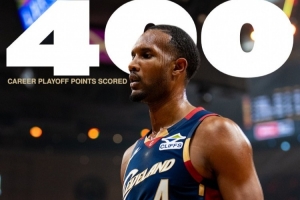 比賽來到第二節(jié),騎士球員小莫布里已砍下10分。至此,小莫布里的生涯季后賽總得分突破400分,來到405。