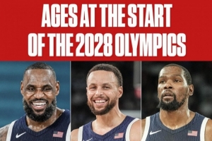如果屆時(shí)庫里、詹姆斯、甚至是杜蘭特參加洛杉磯奧運(yùn)會(huì),他們?nèi)说哪挲g將分別是43歲、40歲和39歲。