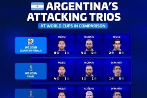 德轉(zhuǎn)列阿根廷近5屆世界杯三叉戟: