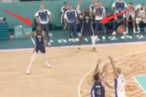談到巴黎奧運會決賽“金色匕首”驚世一投,庫里笑道:“我到現(xiàn)在想到那張照片就想笑,你(指詹姆斯)和KD在那兒高舉著雙手(要球)。”