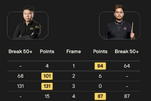 本場比賽,周躍龍轟出兩桿破百和兩桿50+,桑卡姆打出五桿50+。雙方前八局比賽打成4-4平,最后桑卡姆連勝兩局拿下比賽勝利。