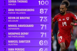 體育資訊11月20日訊 本屆世歐預小組賽已經告一段落,squakwa也統計了本屆賽事進入禁區次數情況,威爾士邊鋒索爾巴·托馬斯領跑。