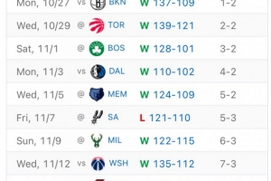 賽后美媒NBACentral曬出了火箭這11場比賽賽果,寫道:“火箭打出了統治力。”