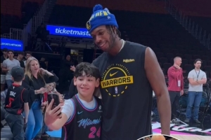 在今天比賽熱身間隙,希爾德看到場(chǎng)邊一位熱火小球迷舉著一個(gè)牌子,上面寫著:“生日愿望是可以和希爾德自拍。”希爾德看到后也很開心的完成了小球迷的生日愿望。