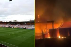 talksport寫道,由于??巳爻求w育場發生火災,他們被迫推遲英甲聯賽比賽。球場多處區域起火,球場遭到破壞 。