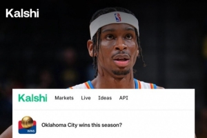體育資訊11月20日訊 今天美媒Kalshi給出了雷霆(15勝1負)本賽季最終勝場數概率預測: