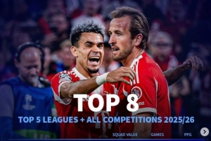 五大聯賽球隊本賽季各項賽事場均拿分榜:(及球隊總身價)