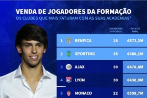 體育資訊11月21日訊 德國轉會市場統計了本世紀各俱樂部出售青訓球員的收入,并列出榜單,本菲卡、葡萄牙體育、阿賈克斯前三。