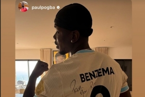 體育資訊11月21日訊 博格巴更新社媒動態,曬出身穿本澤馬球衣的照片。