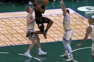 GIF-馬克西上籃撞倒羅林斯被吹進攻犯規,76人挑戰成功,變成2+1