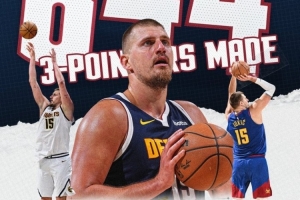 算上這4記三分,約基奇掘金生涯三分命中數來到844記,超越波特(843),來到隊史第二位,僅次于穆雷(1181)。