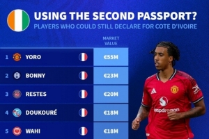 體育資訊11月22日訊 德國轉會市場更新社媒冬天,盤點了仍可以選擇為非洲國家隊效力的球員。