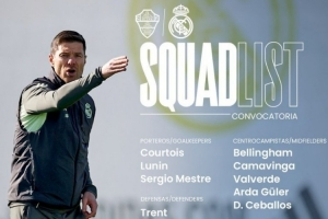 體育資訊11月22日訊 本輪西甲皇馬將迎戰(zhàn)埃爾切,球隊官方也公布了本場比賽大名單,米利唐、阿拉巴缺戰(zhàn),具體如下: