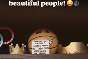 詹姆斯曬出了他在自家衣柜里擺放的一張激勵(lì)自己的手寫字條:“‘競技場中的人’黑子們一踏上球場就會嚇得屁滾尿流。”