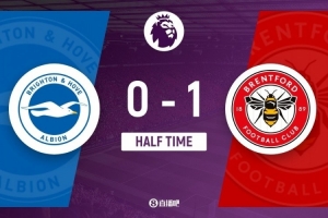 體育資訊11月22日訊 北京時間23:00,英超第12輪布萊頓vs布倫特福德,比賽在美國運通社區球場打響!上半場,巴萊巴送點,伊戈爾·蒂亞戈點射破門!半場結束,布萊頓暫時0-1落后布倫特福德。
