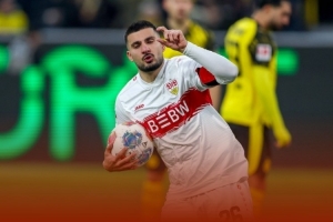 這名前鋒此役上演帽子戲法,包辦斯圖加特全部進(jìn)球,下半場(chǎng)補(bǔ)時(shí)階段的進(jìn)球幫助球隊(duì)絕平多特,從客場(chǎng)帶走1分。