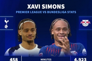 體育資訊11月4日訊 德國轉會市場統計了熱刺新援哈維-西蒙斯在德甲和英超的數據,并做出對比。