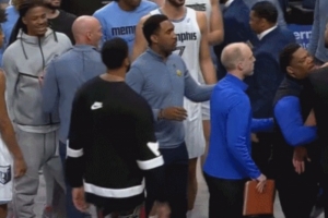 GIF-比賽結(jié)束后 場上的克萊和場邊的莫蘭特吵起來了