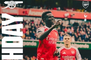 阿森納官方社媒曬出北倫敦德比海報(bào),薩卡、特羅薩德出鏡。