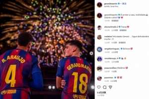 他也在賽后通過社媒曬出諾坎普煙花照,并配文:“在主場的處子秀,難以忘懷????感謝巴薩球迷們!”