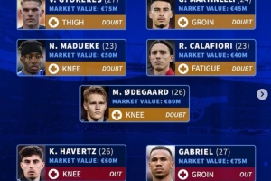 體育資訊11月23日訊 阿森納將在本輪英超焦點戰對陣熱刺,《轉會市場》統計顯示隊內最多可能有8人無法出戰。
