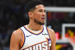 上半場比賽,布克出戰19分16秒,投籃12中6,三分5中3,罰球2中2,得到17分6籃板4助攻。