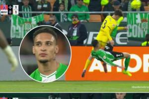 體育資訊11月24日訊 貝蒂斯本輪1-1戰平赫羅納,第90分鐘,安東尼一個倒勾動作踢到對手頭部,裁判看VAR后將他直紅罰下。