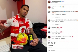加布也在賽后曬出自己身穿埃澤球衣為槍手加油助威的照片,同時還手捧著英超官方與阿森納官方評選的全場最佳獎杯,最后還附上了??????????♂?表情符號。不過從最佳球員獎杯名字是加布里埃爾,可以判斷出這并非今晚的照片。
