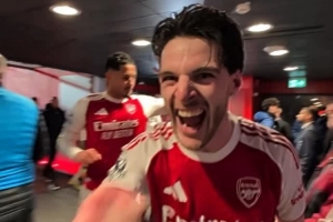阿森納官方更新社媒動態,曬出賽后球員通道的視頻,槍手球員們在回到更衣室的路上慶祝勝利。