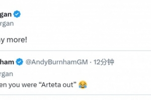 有球迷在社交媒體上調侃阿森納球迷摩根:“我記得你喊過阿爾特塔下課(out)。”