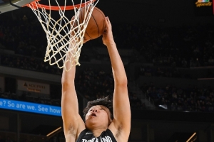 在比賽末節(jié),楊瀚森單臂接樂福妙傳空接暴扣,隨后雷霆暫停。