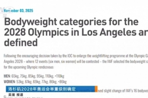 體育資訊11月4日訊 國際舉重聯合會公布了洛杉磯奧運會的舉重項目設置。洛杉磯奧運會舉重比賽將有男、女各6個小項,共12枚金牌。