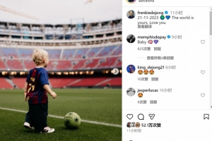 體育資訊11月24日訊 巴薩中場德容更新社媒動態(tài),為兒子邁爾斯慶生。