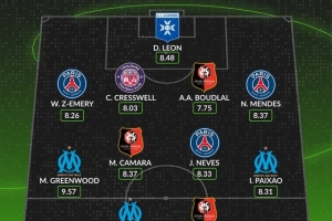 中場:梅森·格林伍德(馬賽,9.57分)、梅赫迪·卡馬拉(雷恩,8.37分)、若昂·內維斯(巴黎,8.33分)、伊戈爾·派尚(馬賽,8.31分)