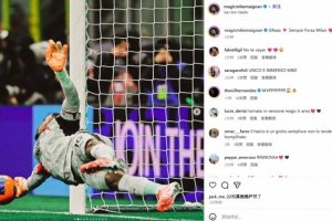 他也在賽后通過社媒曬出自己的多張撲救照,并配文:“哈!?? 永遠(yuǎn)佛砸米蘭(米蘭前進)????”