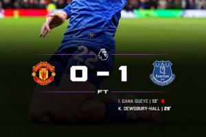 體育資訊11月25日訊 英超第12輪最后一場較量,曼聯0-1不敵十人埃弗頓。