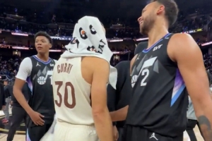 GIF-李凱爾賽后與庫里追夢小佩頓擁抱互動