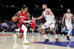 體育資訊11月25日訊 火箭114-92太陽(yáng),賽后,火箭球員小賈巴里·史密斯接受媒體采訪。