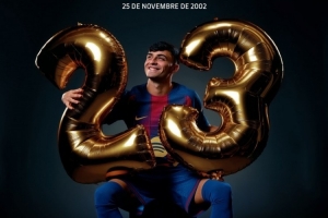 體育資訊11月25日訊 今天是巴薩中場佩德里的23歲生日,巴薩官方為他送上祝福。