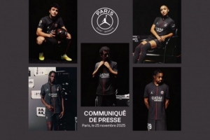 除球衣(這是巴黎與喬丹品牌合作的第15款球衣)之外,該系列還將訓練服與賽前著裝,同受比賽服啟發的完整運動生活服飾相結合。其中包括兩款標志性的Anthem夾克,以及一件以獨特印花融合風格與激情、旨在頌揚王子公園球場活力的Air Jordan派克大衣。為完善整體造型,系列還推出兩款以該系列配色為主題的新款巴黎運動鞋:Air Jordan 5 Retro和Air Jordan 4 RM,二者均配備印有王子公園球場圖案的鞋墊。
