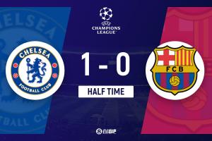 上半場傷停補時2分鐘,半場結束,切爾西暫1-0巴塞羅那。