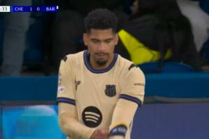 體育資訊11月26日訊 歐冠聯(lián)賽階段第5輪,切爾西半場1-0領(lǐng)先巴薩,巴薩本場首發(fā)隊長阿勞霍第44分鐘吃到本場第2張黃牌,兩黃變一紅被罰下場,巴薩落入半場一球落后+少打一人的困境中。