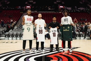 體育資訊11月4日訊 美職聯(lián)波特蘭伐木工隊(duì)球員大衛(wèi)-達(dá)-科斯塔、維爾德在美職聯(lián)季后賽間隙到主場(chǎng)支持開(kāi)拓者。球隊(duì)也由格蘭特、西索科做代表送出了定制球衣。