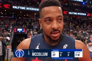 上半場,奇才后衛麥科勒姆手感滾燙,打了18分鐘13投10中,三分8中7狂砍27分2籃板2助攻1搶斷,正負值+22。